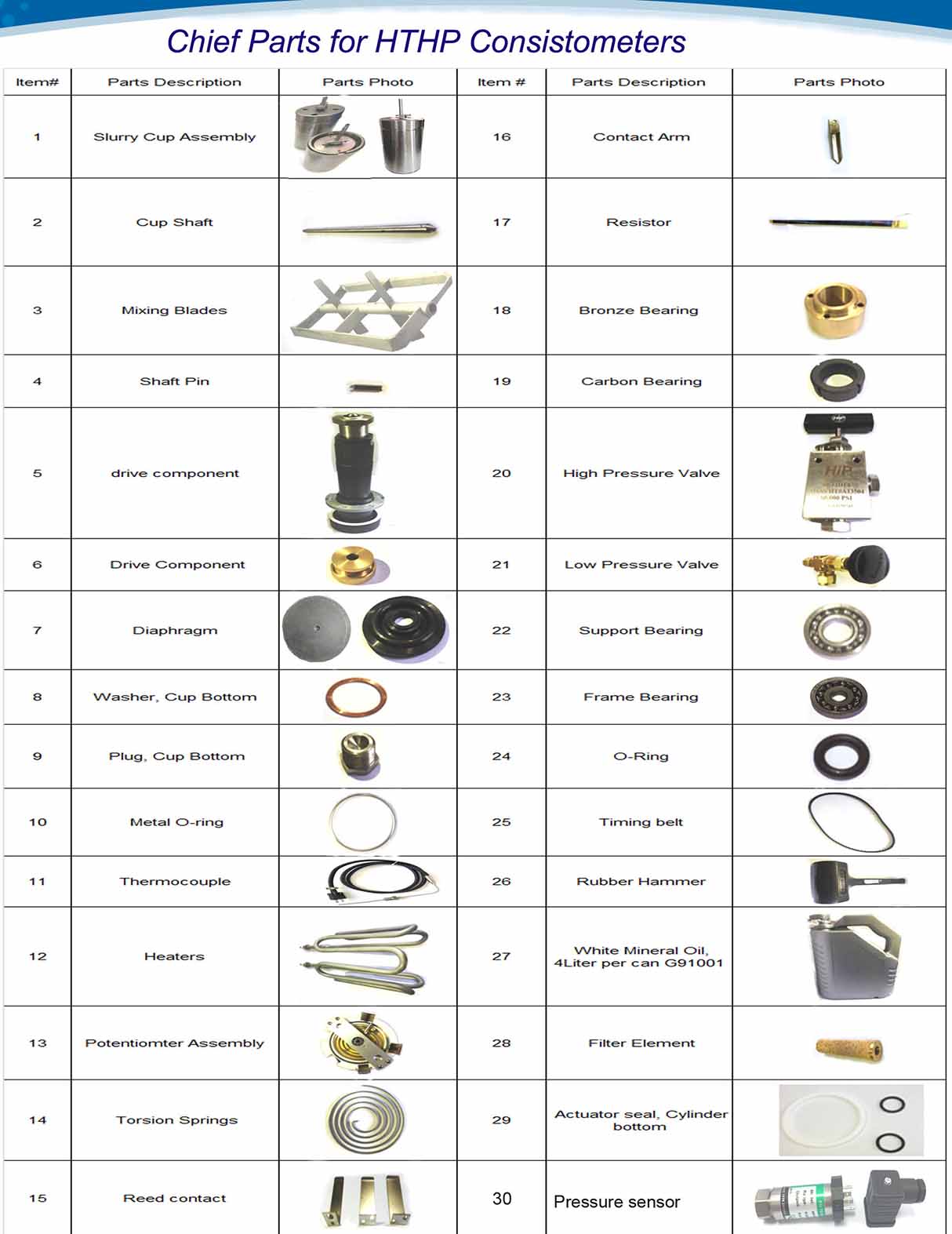 | Product name : Spare parts for HTHP Consistometer |